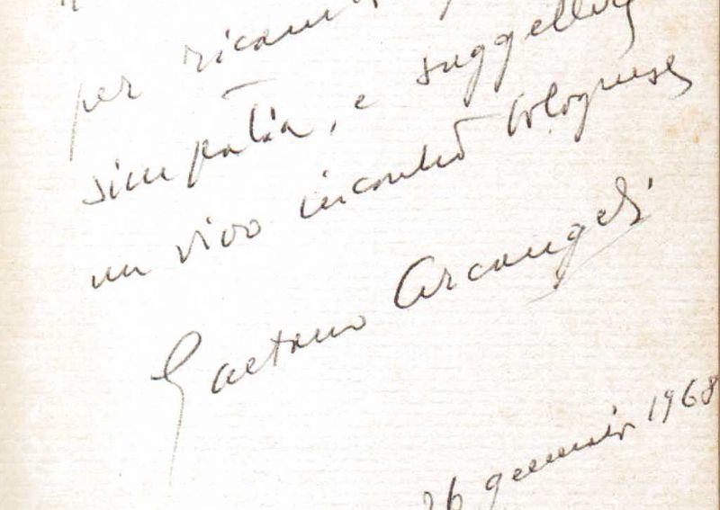In.8°, legatura in brossura editoriale, pp.125, con dedica autografa firmata dall’autore. Contiene anche una poesia su foglio volante, ‘Un sogno anche tu’, in morte di mio fratello Nino.